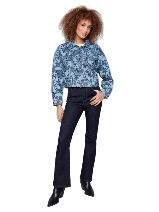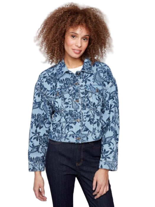 Elevate your wardrobe with this Cropped Jacquard Denim jacket, expertly crafted for a perfect blend of style and comfort. Its tailored fit enhances your silhouette while the delicate floral pattern adds a refined, feminine touch. Ideal for layering, this jacket offers versatility for both casual and polished looks, making it a sophisticated addition to any collection.