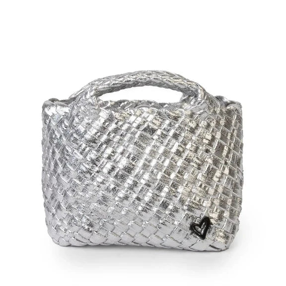 TINY HAND WOVEN SILVER TOTE