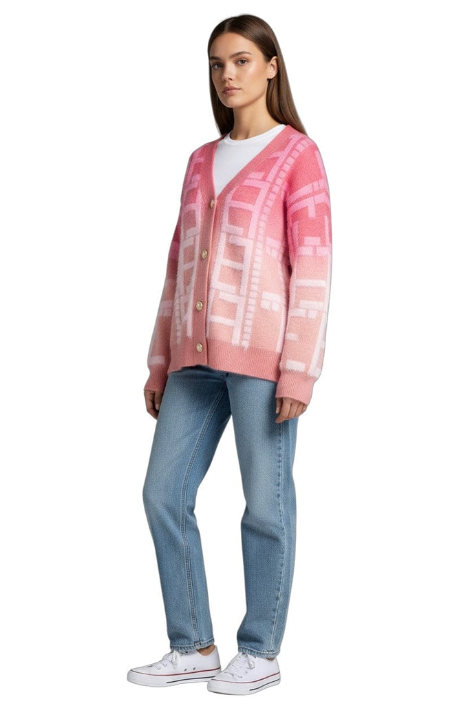 BUTTON UP PINK BEIGE FUZZY CARDIGAN WITH PEARL BUTTONS