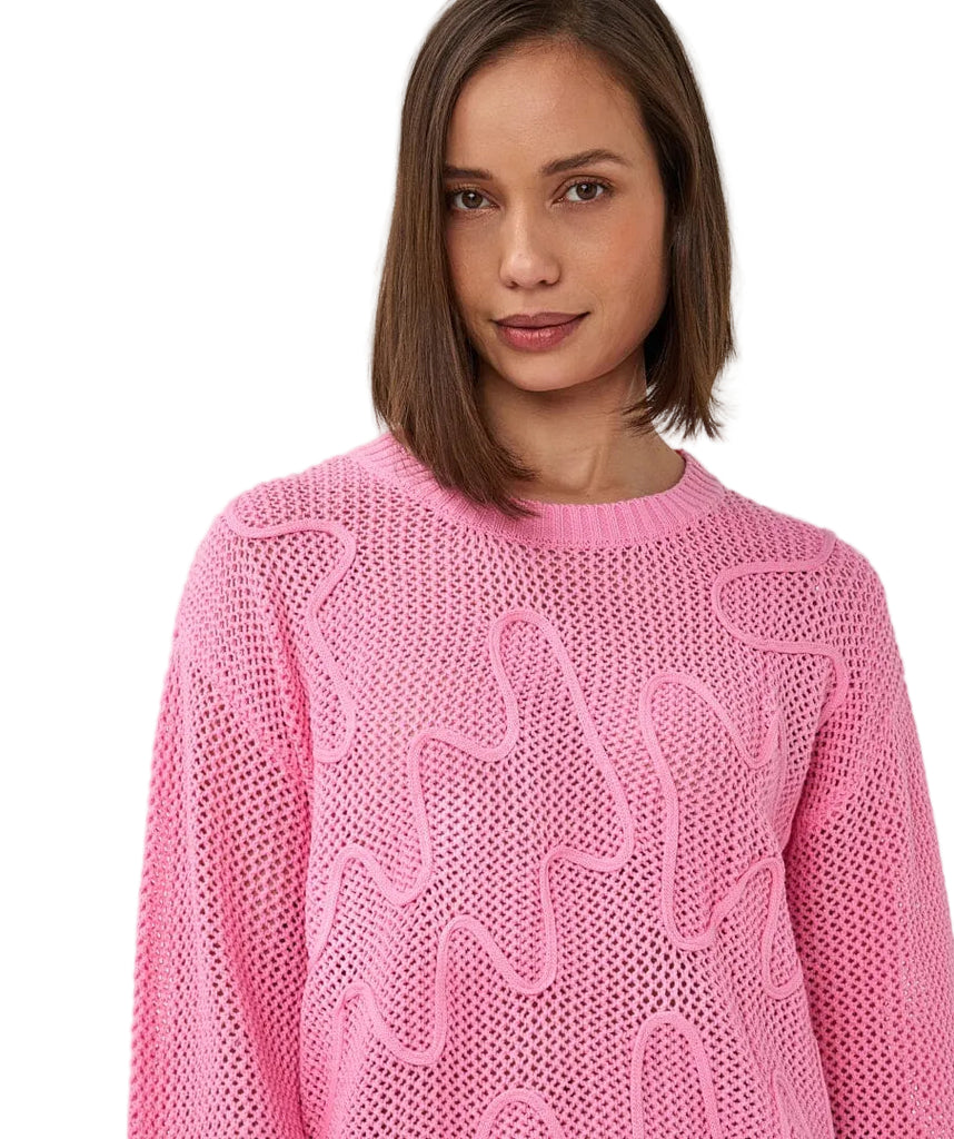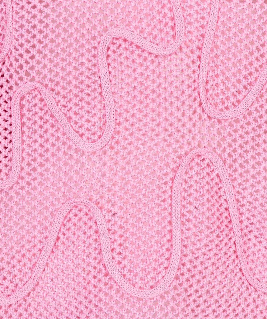 Elevate your layering game with this playful open knit top that's anything but basic. The 3D tape detail adds an unexpected textural twist, while the breathable knit construction keeps things light and airy. Perfect for showing off your favorite cami or bralette underneath, this piece brings dimension and personality to any casual outfit. Mix it with your go-to basics for an effortlessly cool vibe that says you know how to have fun with fashion.