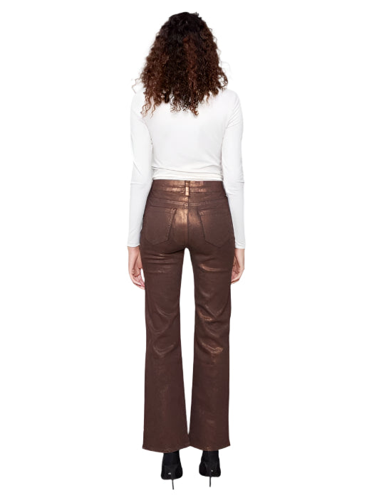 PATCH POCKET FLARED BRONZE METALLIC TWILL PANTS