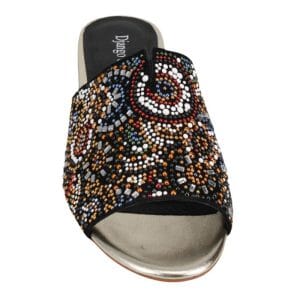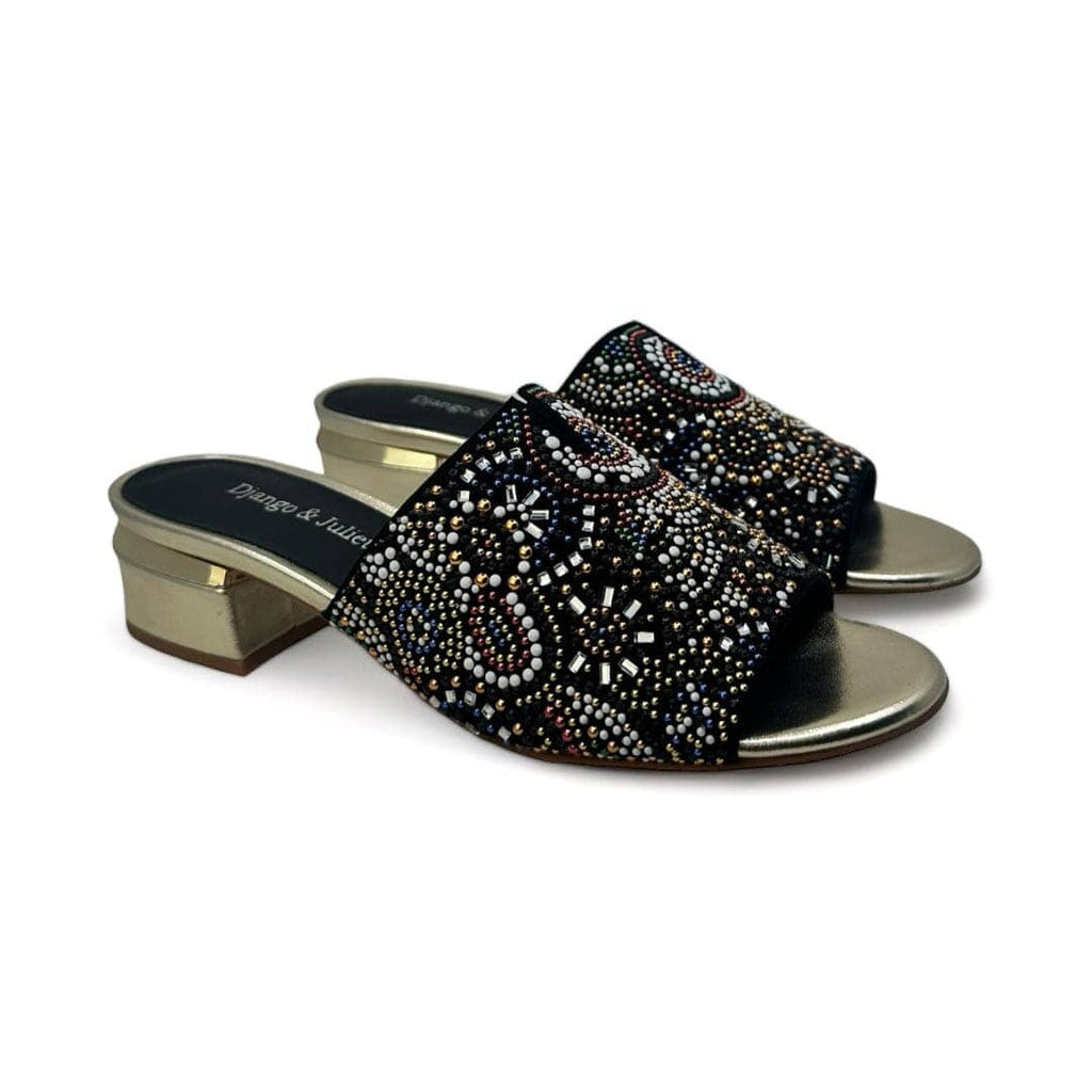 BLACK BEADED SUEDE CHUNKY HEEL SLIP ON SANDAL