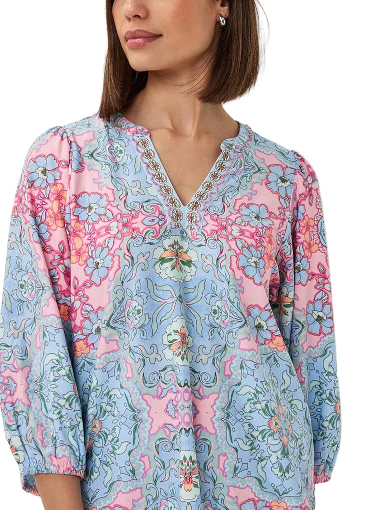 SOFT PASTEL PAISLEY EMBELLISHED V-NECK TOP