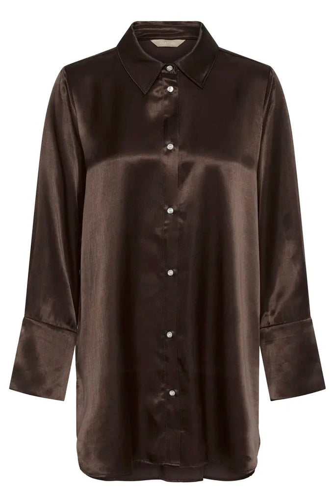BROWN SATIN LIKE BUTTON DOWN BLOUSE