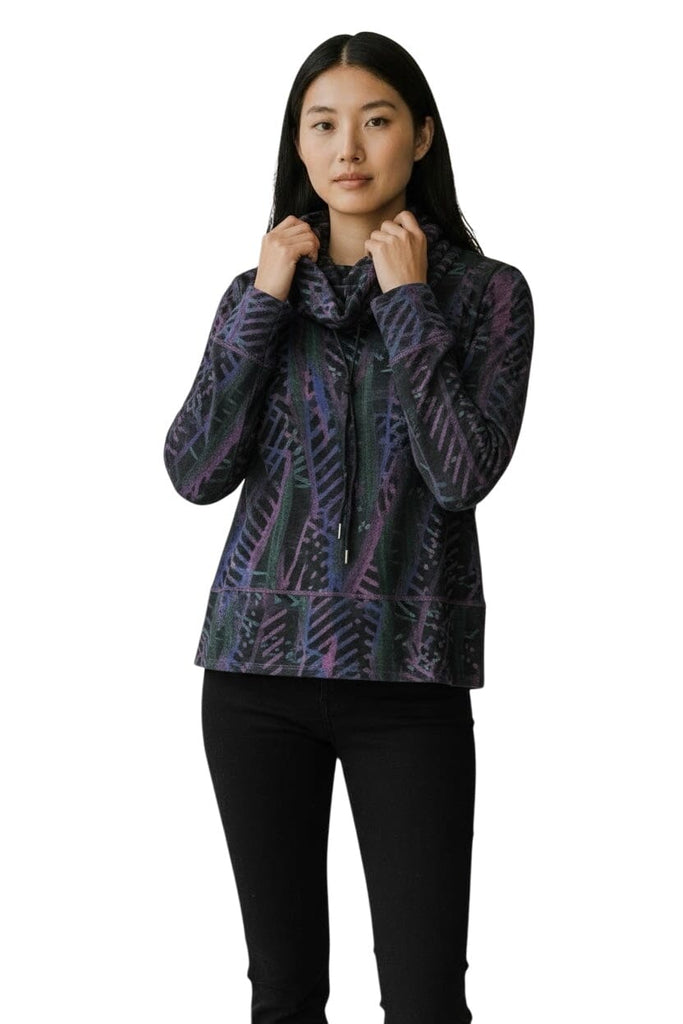 Elevate your casual wardrobe with this eye-catching purple mix print top. The relaxed cowl neckline drapes beautifully for an effortlessly chic look, while adjustable drawstring details let you customize the fit to your style. Perfect for layering or wearing solo, this versatile piece transitions seamlessly from weekend brunch to cozy nights in. The vibrant print adds personality to any outfit, making it a go-to favorite for those who love bold, expressive fashion.