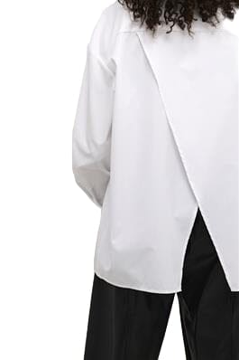 This oversized long sleeve white shirt features a detailed slit back design that adds subtle sophistication and ease of movement. Crafted for a relaxed yet refined fit, it combines classic minimalism with a modern twist, making it a versatile addition to any wardrobe. The slit back enhances breathability while maintaining an elegant silhouette suitable for both casual and polished looks.