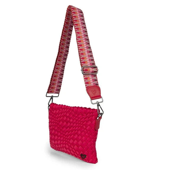 CRANBERRY RED WOVEN CROSSBODY Handbag prenelove OS Cranberry Red