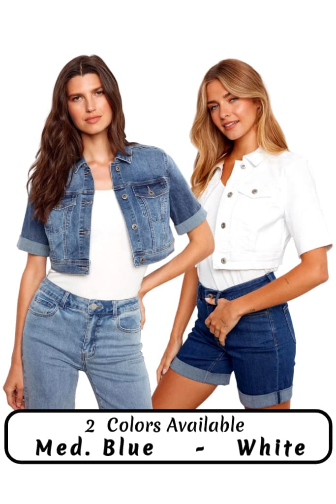 CROPPED SHORT SLEEVE DENIM JACKET Jacket Charlie B