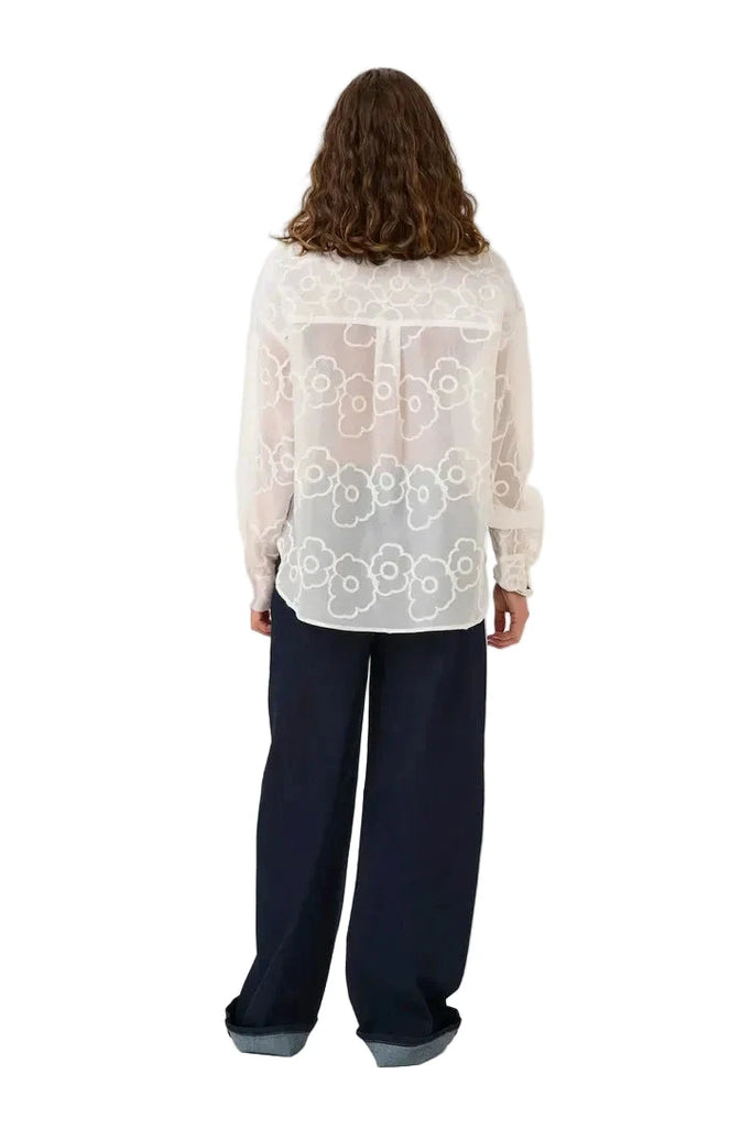 BLOUSE EN COTON BLEU À MANCHES COUDÉES