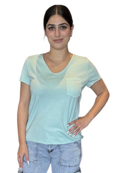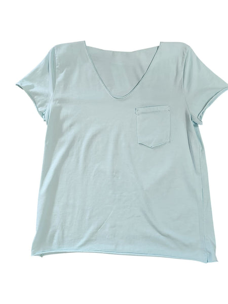 T-SHIRT ROSE MANCHES COUDÉES COL V
