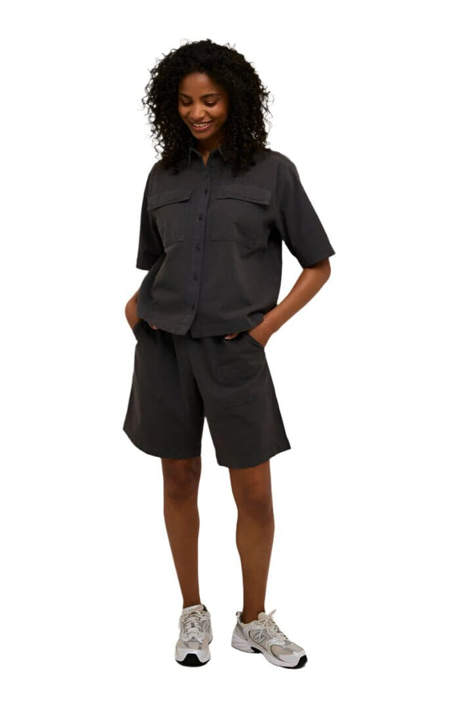 En tant qu'expert produit, je vous présente notre Pantalon Court en Coton Kaki. Avec sa taille élastique et son design à enfiler, ce pantalon offre commodité et confort. La taille haute et la longueur courte offrent une coupe élégante et flatteuse. Doté d'une coupe ample et d'une jambe large, ce pantalon offre à la fois style et facilité de mouvement.