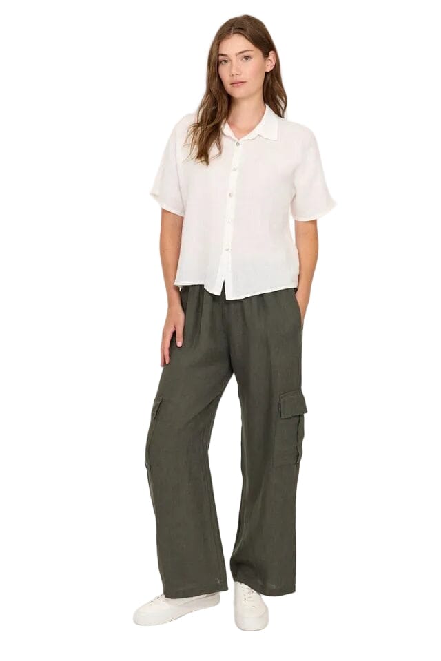 MILITARY GREEN LINEN CARGO PANT Pants Pistache XS Military Green