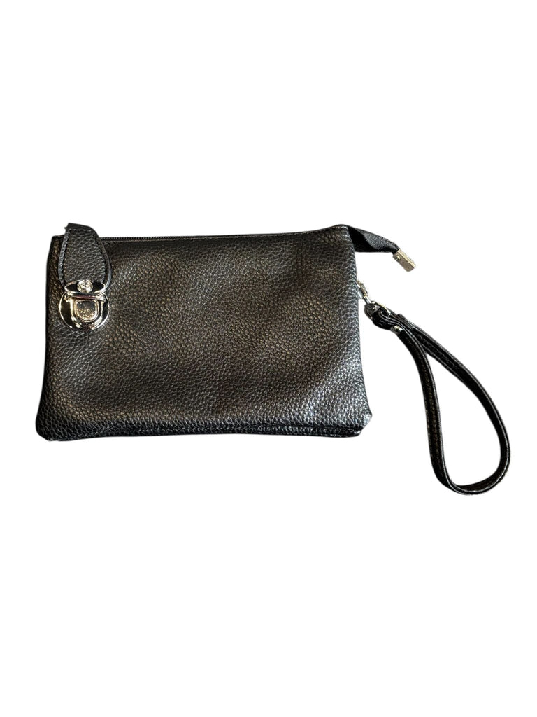 Designed for the organized traveler, this black crossbody bag with a silver clasp combines functionality with refined style. Multiple interior and exterior pockets keep essentials within easy reach, while the removable adjustable strap adapts to your preferred carrying height. The detachable wristlet—secured with a gleaming gold snap clasp—doubles as an independent clutch for quick outings. Crafted with practical elegance, this versatile piece transitions seamlessly from daily commutes to weekend adventures.