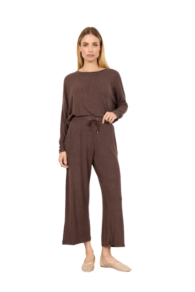 DRAWSTRING ELASTIC WAIST FLARED TRACK PANT Pant SOYACONCEPT XS Brown