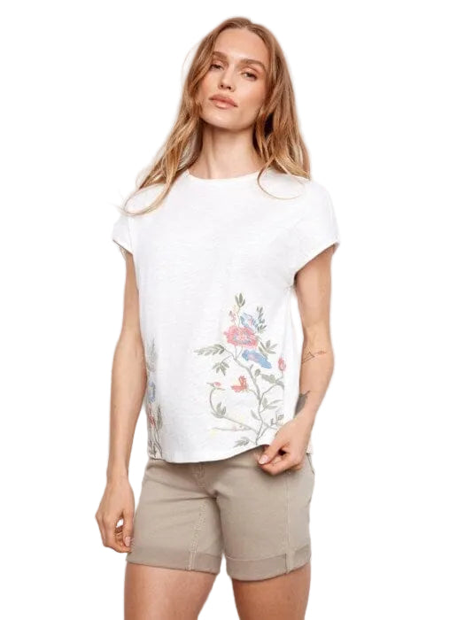 Elevate your everyday style with this charming cotton cap sleeve top, featuring delicate floral embroidery that adds a touch of botanical beauty. The breathable cotton fabric keeps you comfortable all day long, while the classic cap sleeves offer a flattering, feminine silhouette. Perfect for casual outings or dressing up with your favorite accessories, this versatile piece brings effortless elegance to any wardrobe. A timeless essential that celebrates nature's prettiest details!