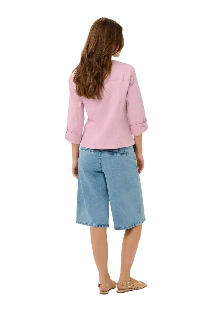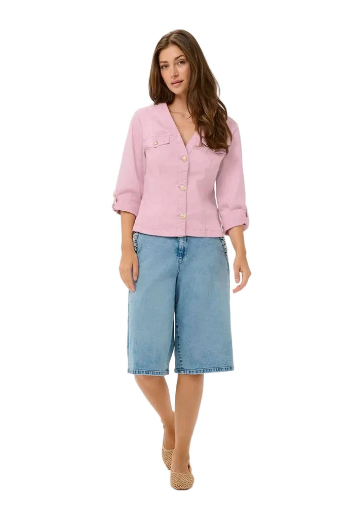 PINK V-NECK DENIM JACKET WITH GOLD BUTTONS